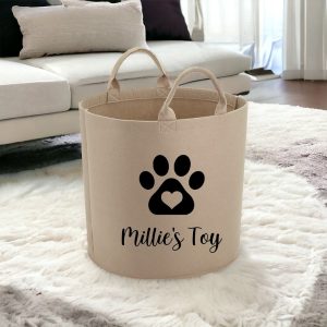 Custom made personalised pet storage basket, dog toy basket, felt storage, Gifts for pets, Pet homeware, Personalised dog gift, New pet gift