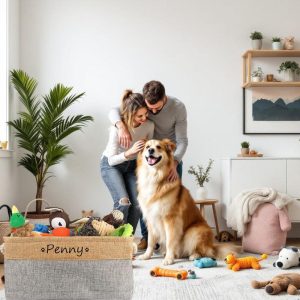 Custom Pet Toy Storage Basket – Personalized Name Box for Dog and Cat Toys, Stylish Organizer for Accessories and Clothes, Unique Pet Gift
