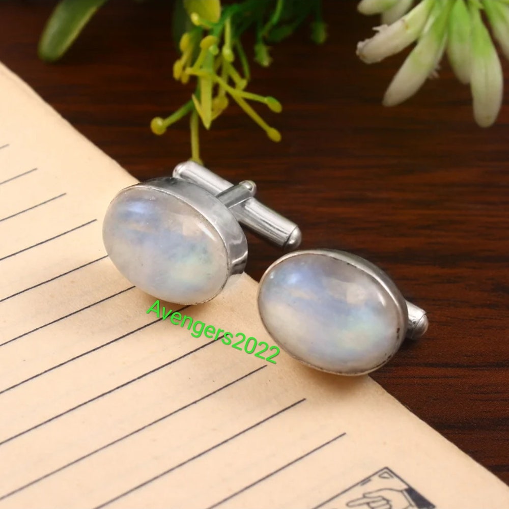 Moonstone Gemstone Cufflinks,Wedding Cufflinks,925 Sterling Silver Jewelry, Handmade Men’s Cufflinks,Gift For Love/Father,Shirt Cufflinks